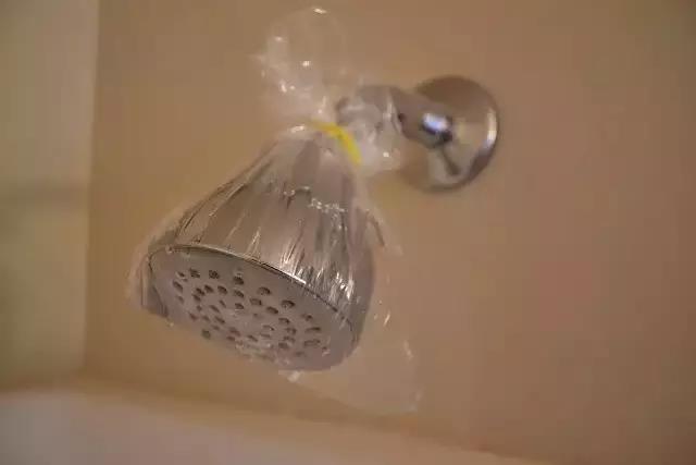 要清潔淋浴噴頭其實很簡單,拿一個塑料袋,倒入蒸餾水白醋,用橡皮筋固定在淋浴頭上,浸泡一小時后用干凈濕布擦干即可。