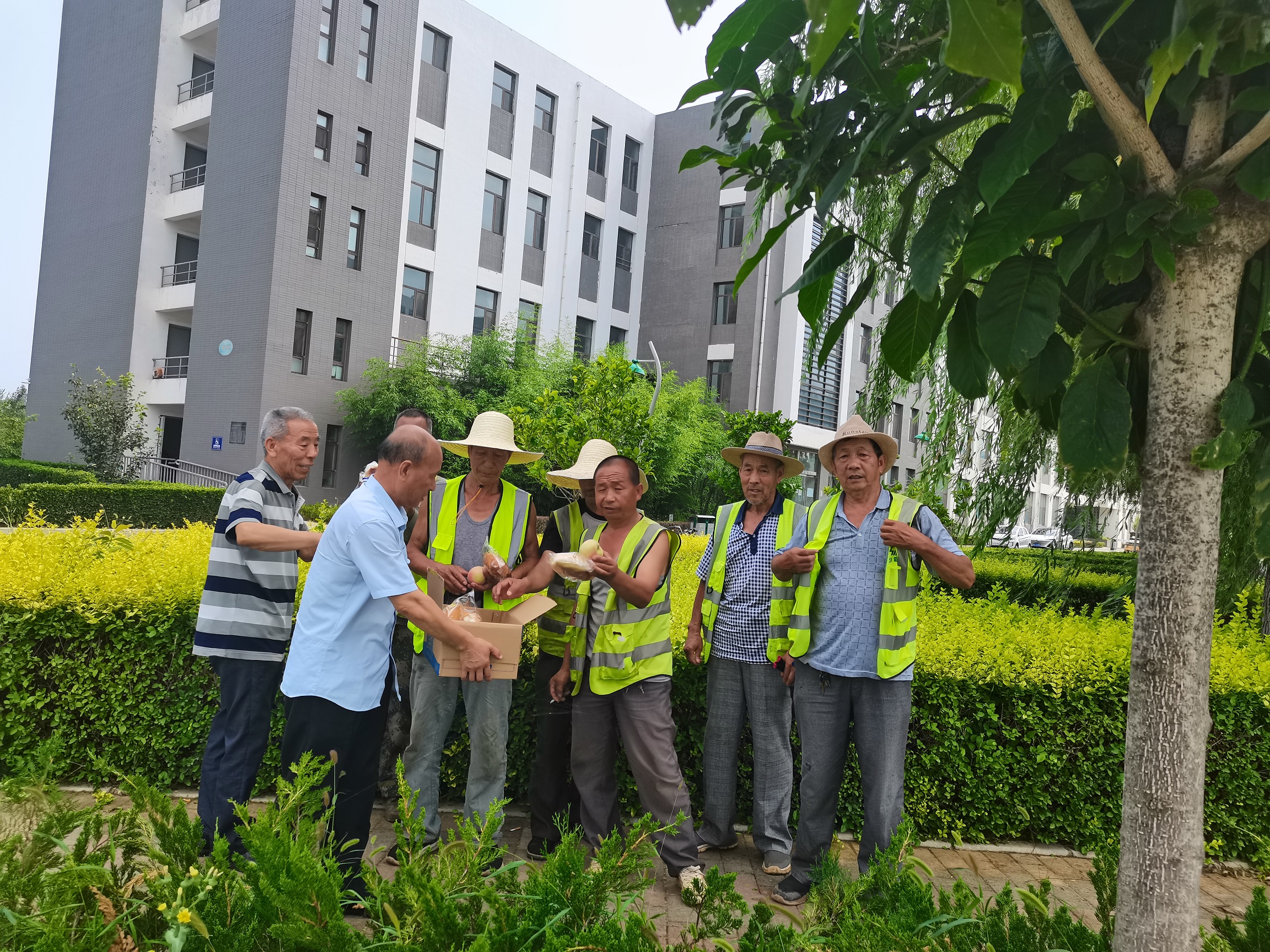 崔偉一行先后到山西科技學(xué)院、晉城市金鳳凰廣場、人民廣場、物貿(mào)廣場、鳳西廣場、沁水端氏小學(xué),對(duì)堅(jiān)守崗位、堅(jiān)持服務(wù)的潔霸員工進(jìn)行慰問,為他們送上白糖、面包、桃子、藿香正氣水等慰問品,向他們戰(zhàn)高溫,斗酷暑,辛勤付出表示肯定和感謝,并叮囑大家注意防暑降溫,合理安排工作,保障自身安全健康,在疫情防控的關(guān)鍵時(shí)期要做好個(gè)人防護(hù),筑牢防疫屏障。一線員工表示:感謝公司的關(guān)愛,一定會(huì)做好本職工作,為建設(shè)活力、美麗、幸福新潔霸做出更大的貢獻(xiàn)。