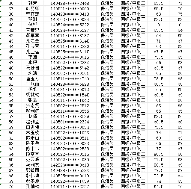 2024年1月20日第2批保潔員中級(jí)認(rèn)定人員成績公示
