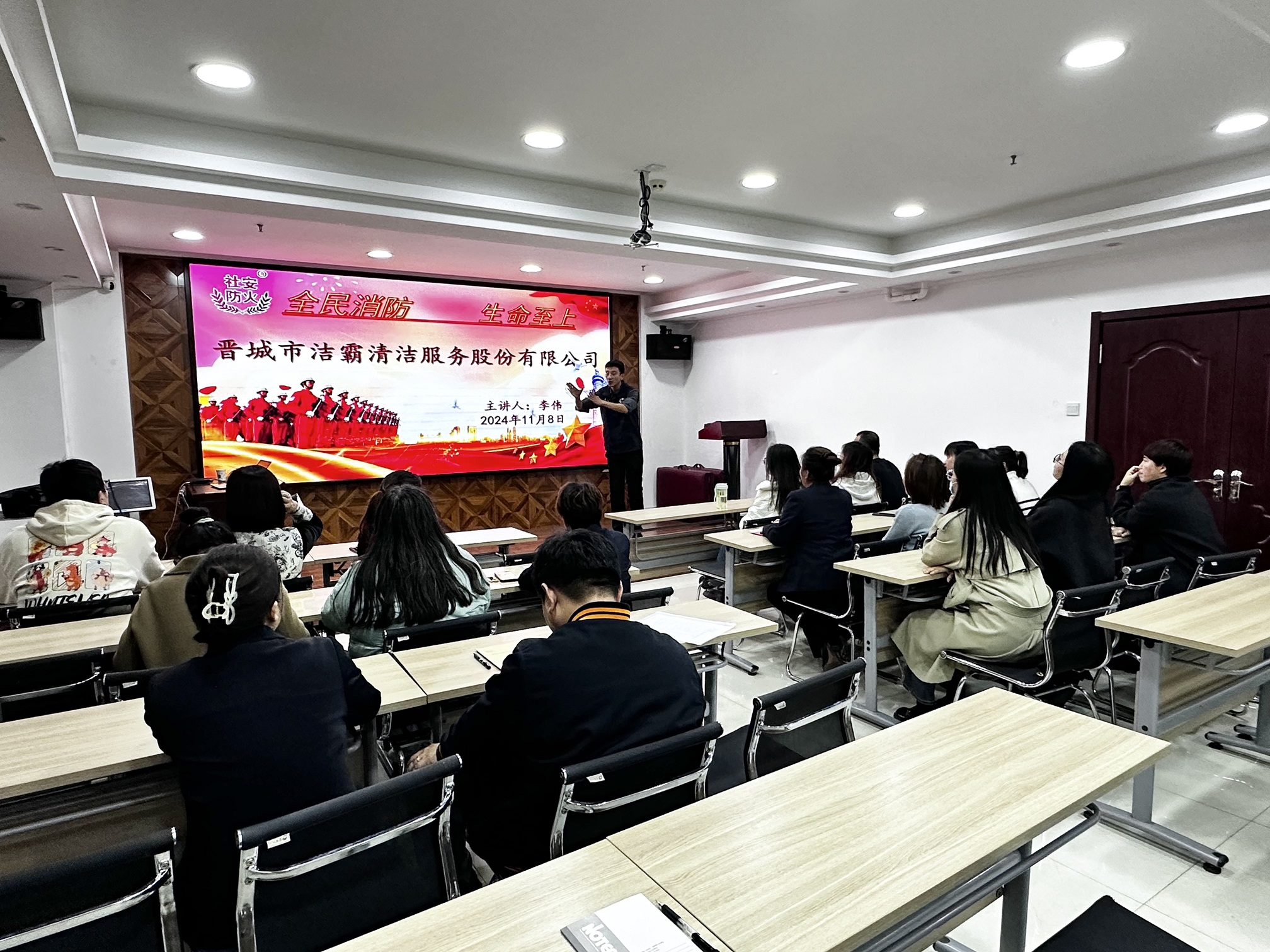 今年11月9日是第33個“全國消防安全宣傳教育日”。8日晚,公司舉辦“119”消防宣傳月主題培訓(xùn),邀請社安防火的李偉老師進行授課。公司近30名管理人員參加培訓(xùn)。