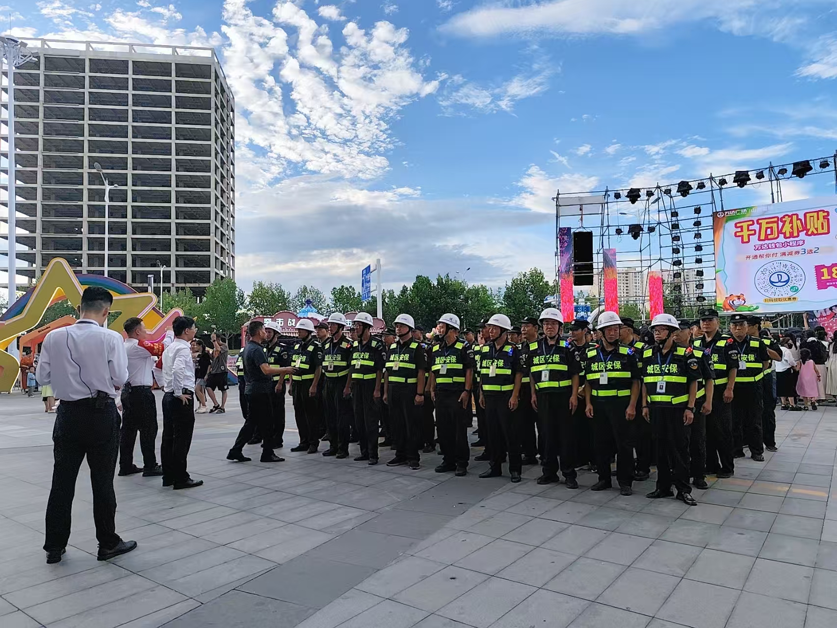 活動(dòng)前夕,城區(qū)保安公司提前謀劃并多次與萬(wàn)達(dá)商場(chǎng)負(fù)責(zé)人對(duì)接,對(duì)活動(dòng)現(xiàn)場(chǎng)及周邊進(jìn)行多次實(shí)地詳細(xì)勘察,綜合分析研判活動(dòng)規(guī)模、表演區(qū)域及人流車流等要素情況,制定了周密的安保方案,抽調(diào)50名經(jīng)驗(yàn)豐富、訓(xùn)練有素的保安人員組成專項(xiàng)執(zhí)勤隊(duì)伍,采取定點(diǎn)執(zhí)勤、流動(dòng)巡查的方式,合理布控保安力量,明確各崗位職責(zé)與應(yīng)急處置流程,分崗定責(zé),壓實(shí)責(zé)任,確保活動(dòng)全程的安全性和可控性。組織全體執(zhí)勤人員進(jìn)行崗前培訓(xùn),重點(diǎn)強(qiáng)調(diào)人流疏導(dǎo)技巧、突發(fā)事件應(yīng)對(duì)方法以及服務(wù)禮儀規(guī)范,確保每個(gè)人都熟悉崗位要求,以最佳狀態(tài)投入執(zhí)勤工作。